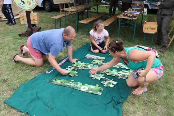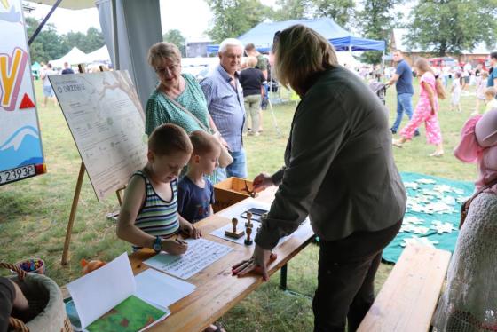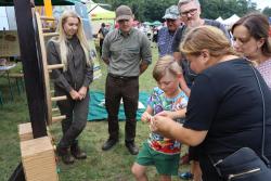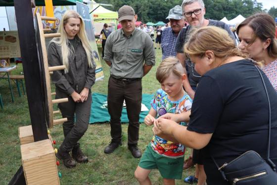 Nasz namiot tętnił życiem od samego początku. Przygotowaliśmy mnóstwo edukacyjnych zabaw i gier zarówno dla dzieci, jak i dorosłych. Każdy mógł dowiedzieć się czegoś o lesie, ochronie przyrody i ekologii. Tablice informacyjne, quizy, zagadki przyrodnicze przyciągały zainteresowanych w każdym wieku. Dzieci z entuzjazmem poznawały tajemnice lasu, uczyły się rozpoznawać gatunki drzew, tropy zwierząt