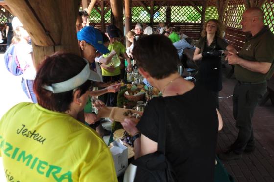 Po przybyciu grup na obiekt uczestników marszu czekała niespodzianka. Było to stoisko promujące wyroby „Dobre z lasu”, na którym można było skosztować przetworów z owoców leśnych oraz zasmakować naparów pochodzenia zielarskiego, soku z brzozy czy chlebka ze smalcem z dzika serwowanych przez pracowników nadleśnictwa.
