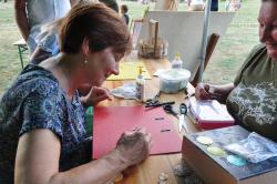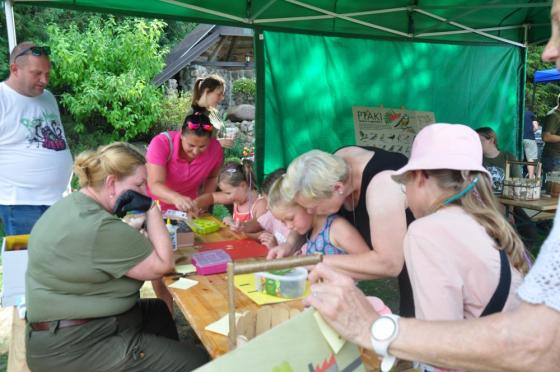 Nasze stoisko chętnie odwiedzali zarówno dorośli jak i dzieci, którzy mogli u nas zgłębić wiedzę dotyczącą lasu. Gdy dzieci zajmowały się malowaniem, rysowaniem i układaniem leśnych puzzli, dorośli z ciekawością czytali leśne historyjki oraz brali udział w konkursach. Najmłodsi najchętniej malowali na drewnie, boso stąpali po leśnej ścieżce zmysłów, a nieco starsi robili kolczyki z leśnych kwiatów. Zarówno u dorosłych, jak i dzieci, na twarzach pojawiał się uśmiech, gdy wspólna zabawa i warsztaty pozwalały odkryć tajemnice lasu.