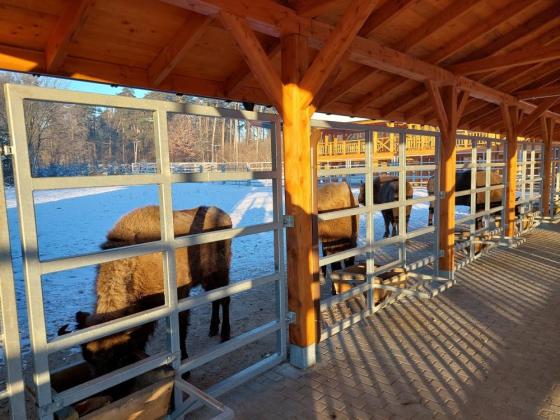 W zagrodzie już mieszkają pierwsi lokatorzy – cztery żubry, wśród nich trzy krowy i jeden byk. Docelowo licząca prawie 9 hektarów zagroda pomieści 12 żubrów. Jej udostępnienie zwiedzającym planowane jest na wiosnę.