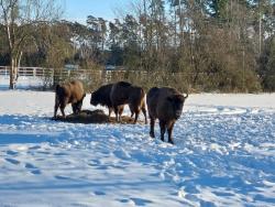 Trwają ostatnie prace gospodarcze wokół pokazowej zagrody żubrów w Krajewie koło Mławy. Już mieszkają w niej cztery żubry – jeden byk i trzy krowy. Wiosną zagroda zostanie udostępniona zwiedzającym.