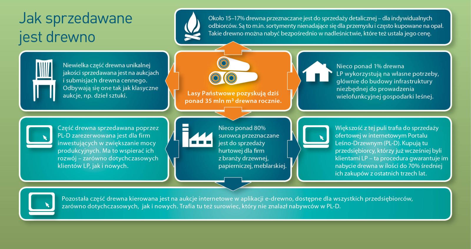 In recent years, the Sate Forests increased the sale of firewood of one third – up to over 4 million cubic meters annually. Firewood is not only the most ecological heat source, but also is much more attractive in respect of relation of price and electric efficiency, rather than cola, oil, gas or electric power. Some of customers choose already prepared and cut into pieces wood, the others very willingly obtain it by themselves after arranging all details and fulfilling particular safety conditions, and after paying the fee; that concerns mainly so called "thinnings". Such a raw material is very cheap, that is why many people from village areas profit from such possibility.